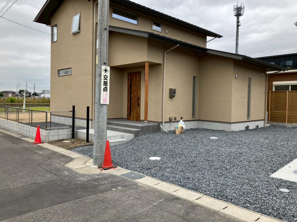 駐車場に砕石を敷き、玄関前のモルタルステップトお庭の山砂を敷きました