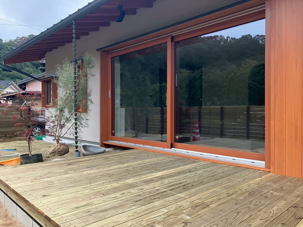 お住まいの雰囲気に合わせた、温かみのある木のデッキが完成しました。