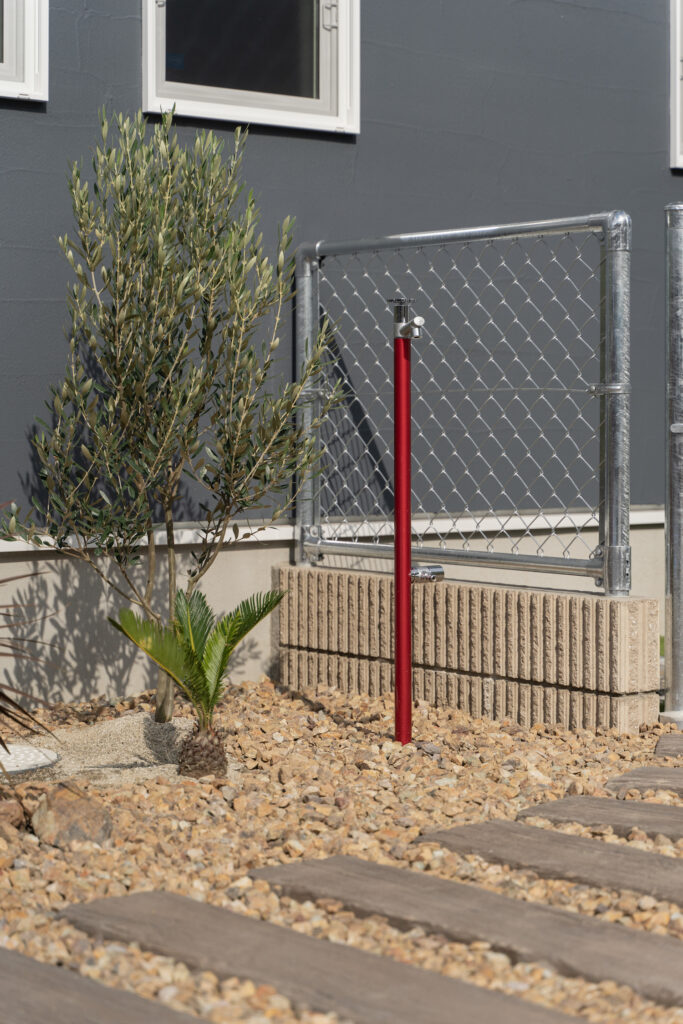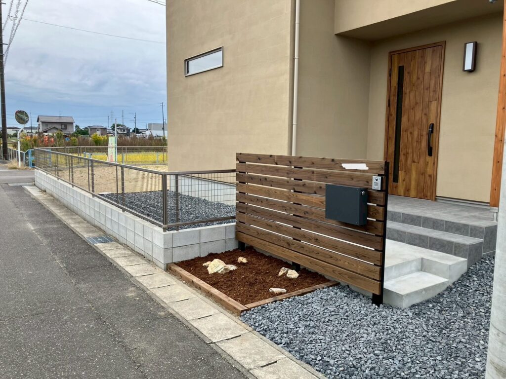 門塀の前のスペースは将来施主様が植栽を植えられるスペースです