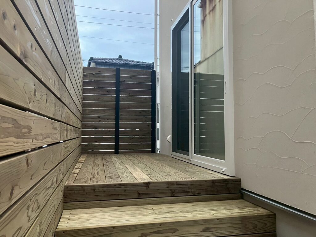 お住まいの雰囲気に合わせた、温かみのある木のデッキが完成しました。
