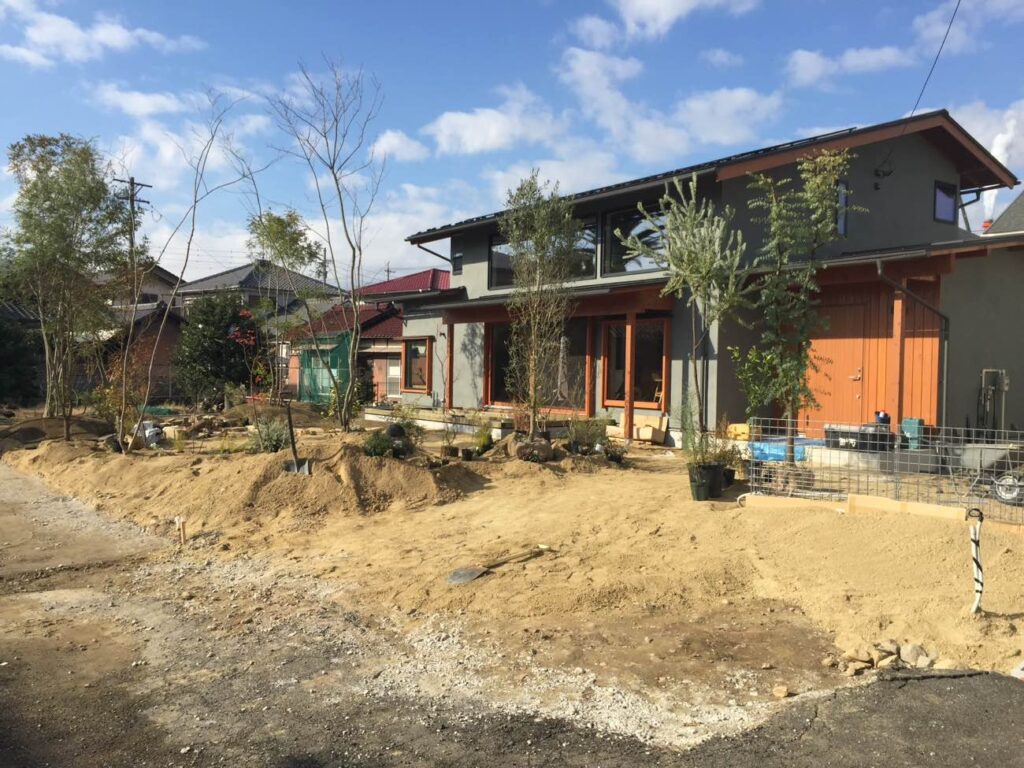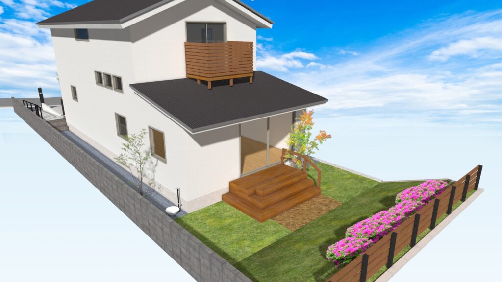 こちらのお家では玄関前に緩やかな勾配のスロープを施工します