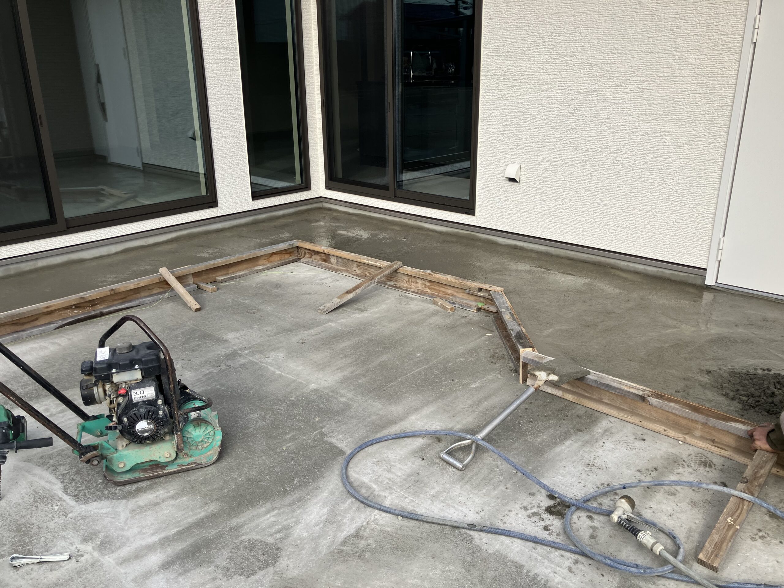 中庭のタイルテラスの土台を作っていきます