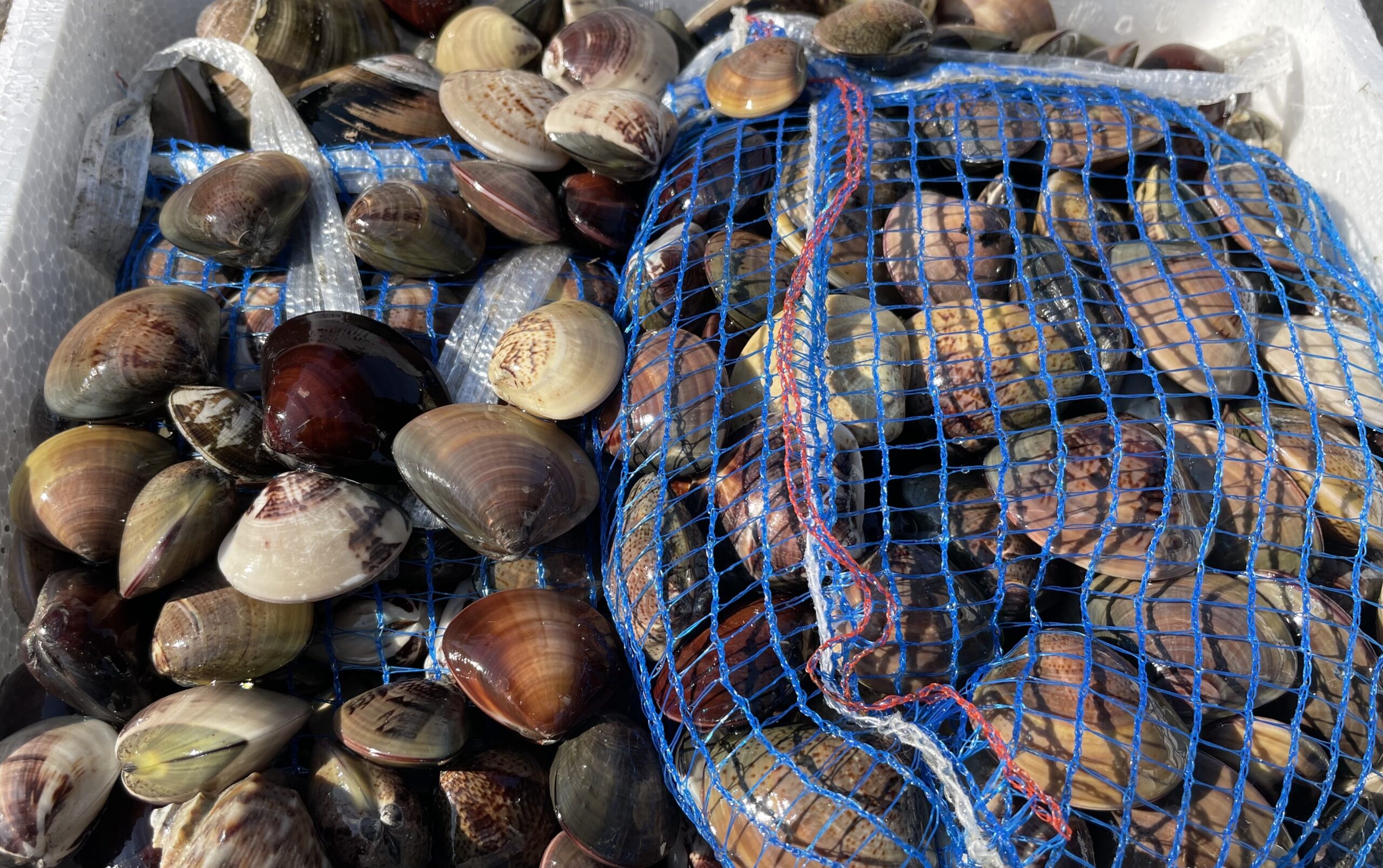 潮が引いた砂地に足を踏み入れると、普段の現場とは違う自然の感触に少し新鮮な気分になります。しゃがんで夢中で掘っていると、気づけば時間を忘れるほど没頭。アサリも程よく採れて、しっかりと成果もありました。