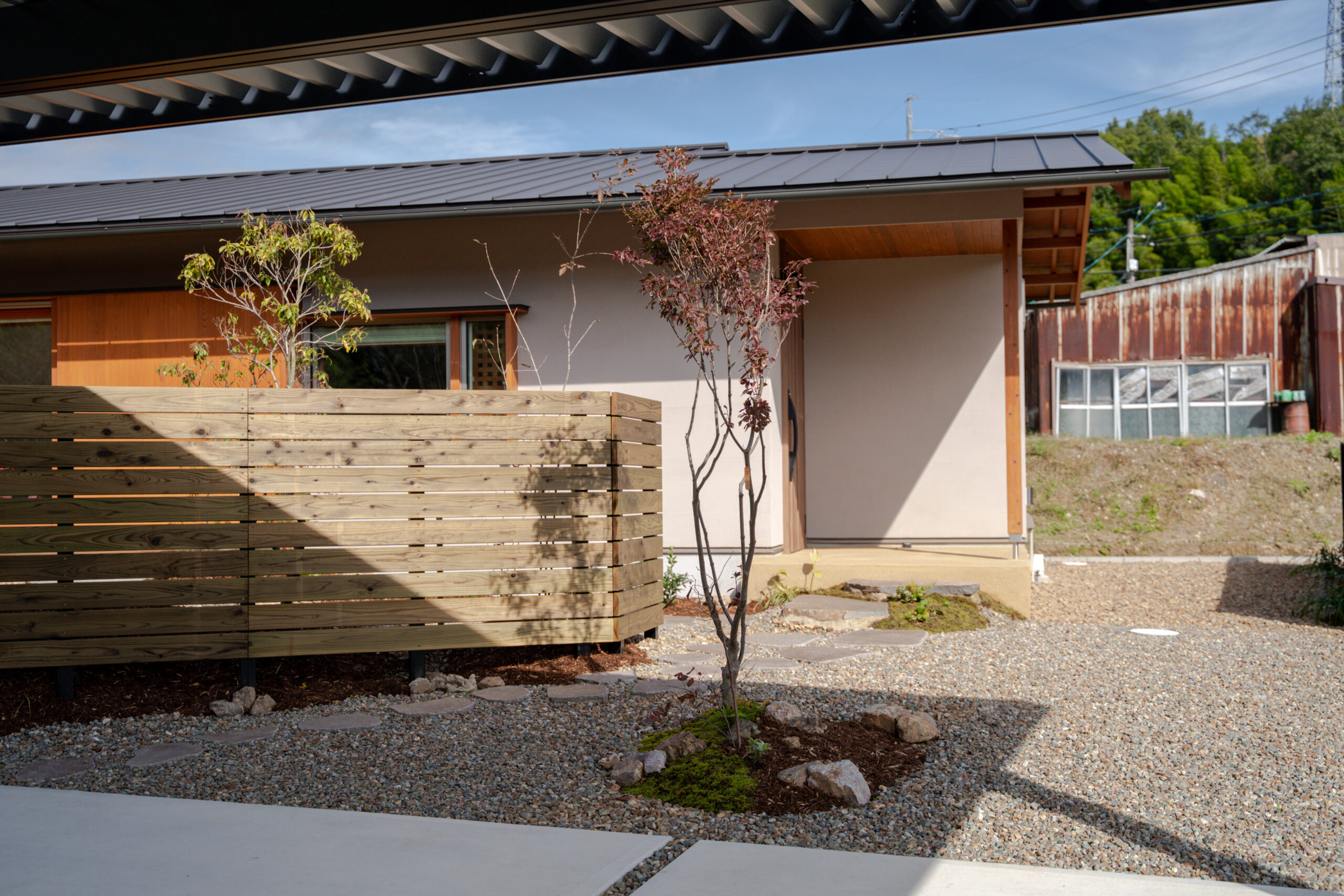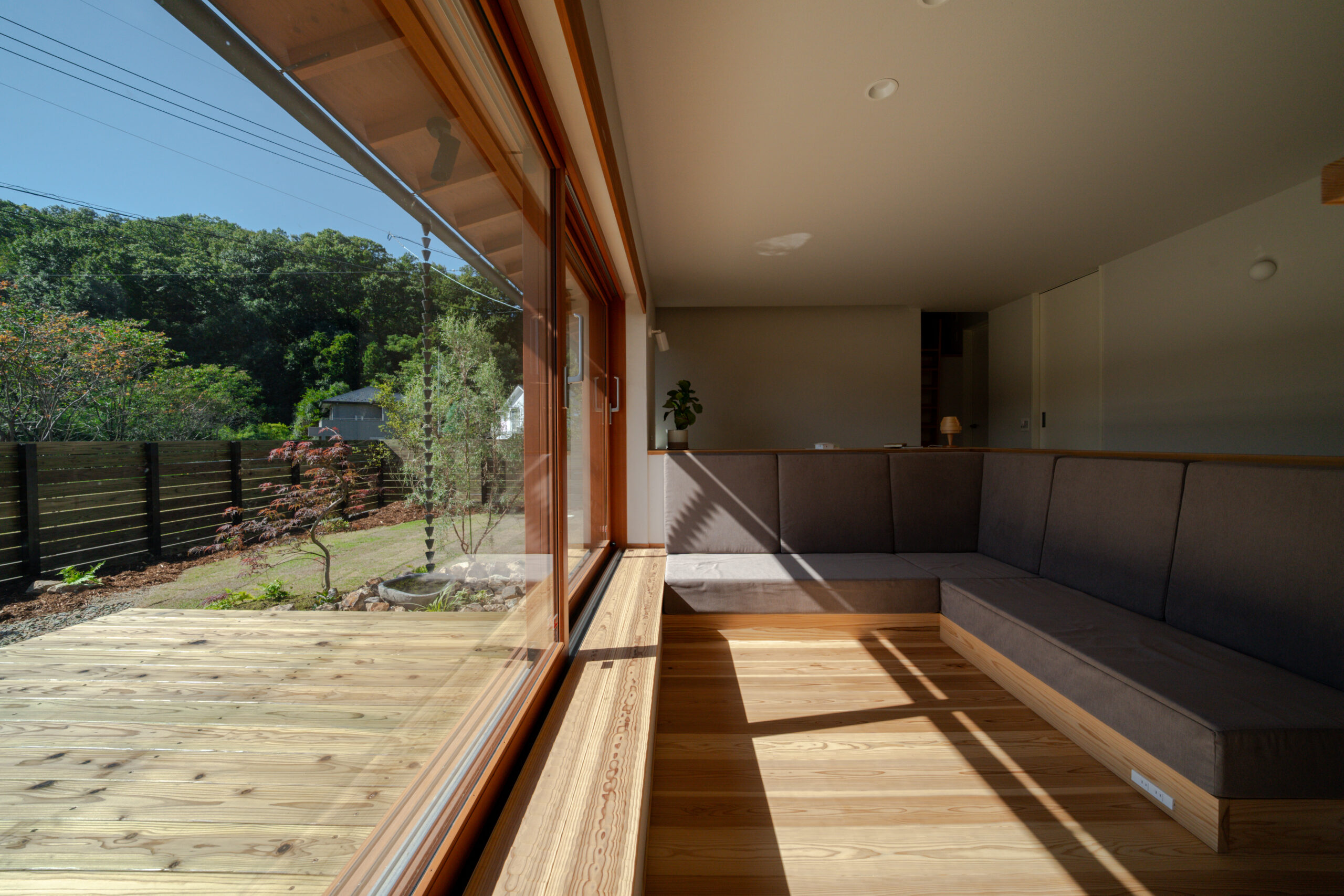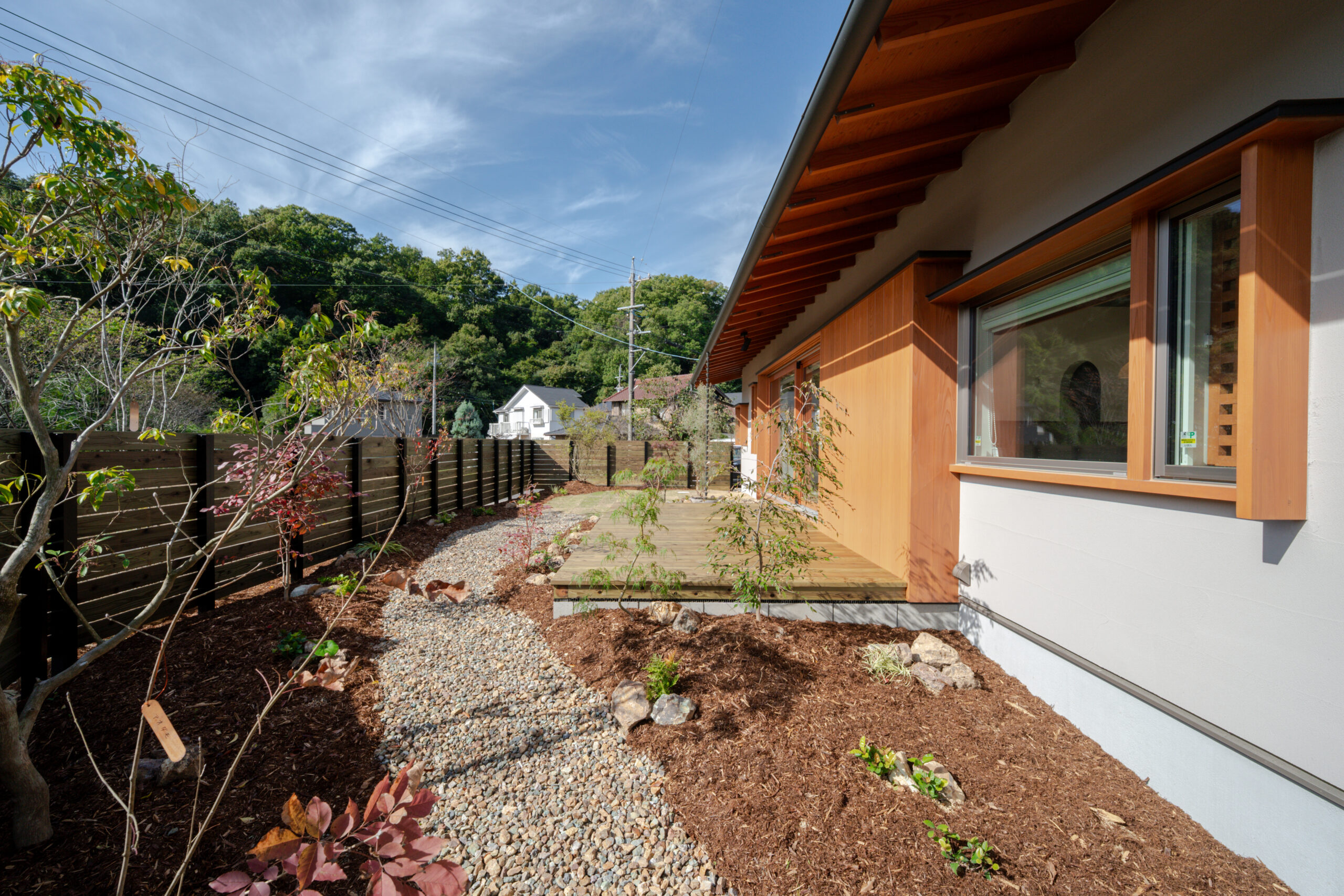 和モダンの平屋と調和した開放感のある贅沢なお庭